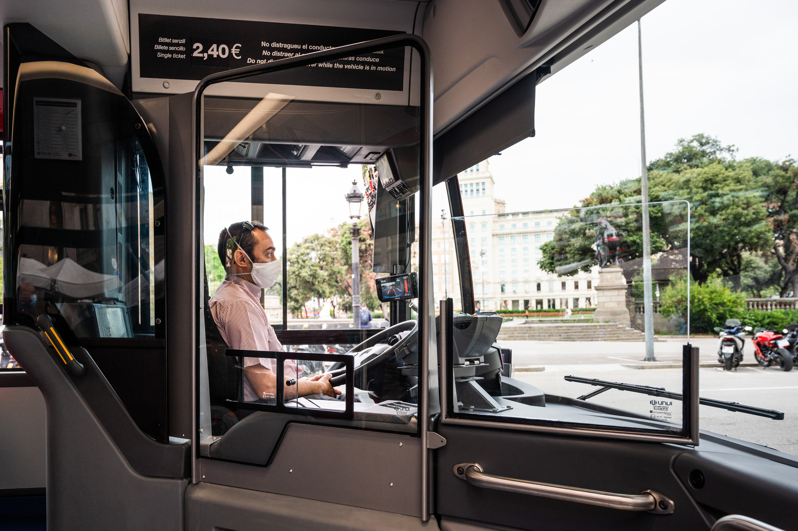 Amb l’habilitació de la porta davantera, l’ús de la mascareta continuarà sent voluntari per part dels conductors mentre estan conduint. D’acord amb la normativa establerta per la Generalitat per a la gestió de la Covid-19, el personal del servei públic de transport no està obligat a portar mascareta durant el període de conducció sempre que estigui sol en els habitacles destinats a tal fi, que hauran d’estar convenientment protegits, com és el cas dels espais de conducció dels autobusos de TMB.