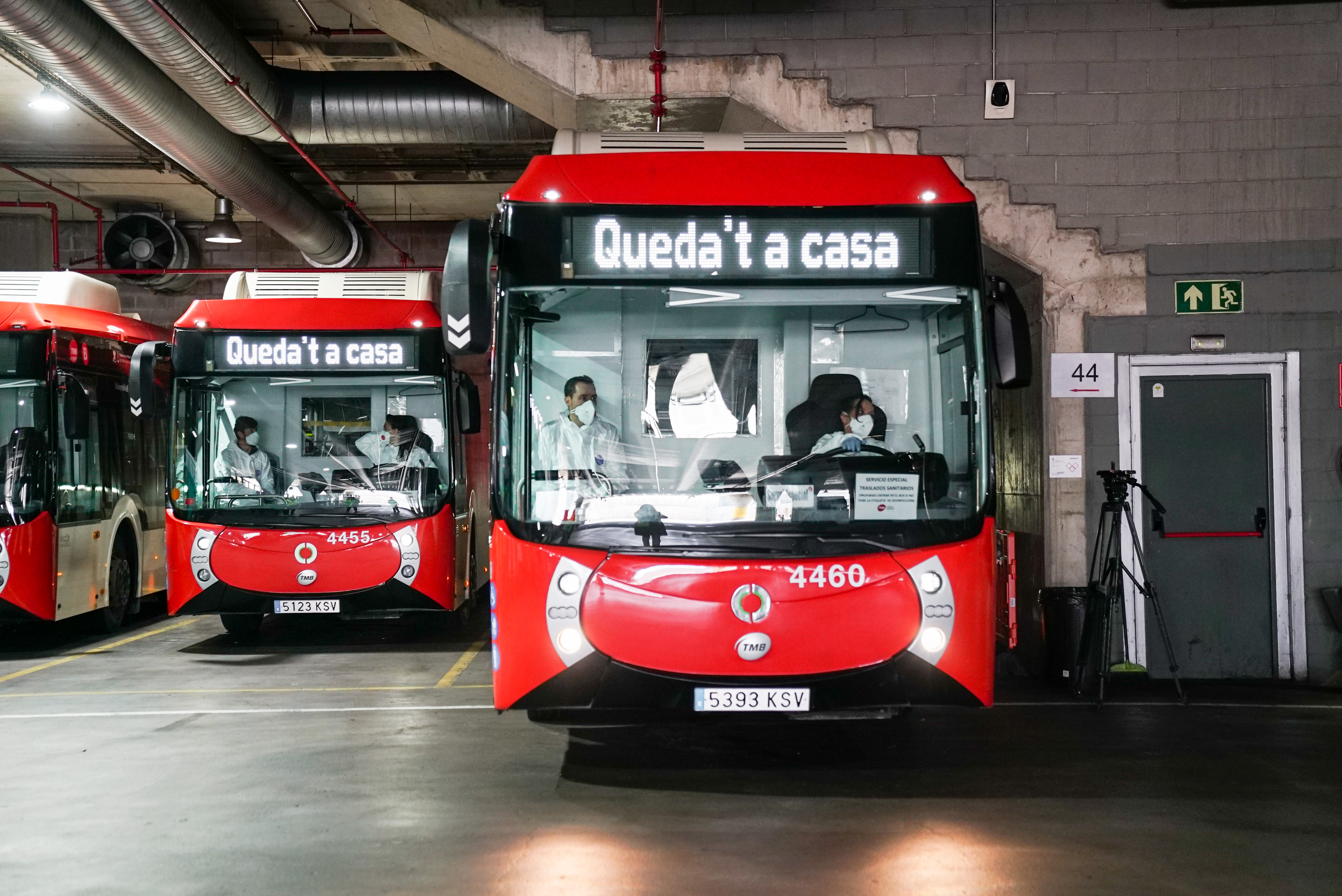 Els autobusos assignats als transports sanitaris són tres de tipus midi (9-10 metres de longitud) amb base a la cotxera d’Horta. Han estat preparats i condicionats per al transport de pacients, amb una separació física entre l’espai de passatge i el de conducció. Cada dia s'hi aplica un protocol estricte de neteja i desinfecció a fons. Pel que fa als conductors, treballen amb els equips de protecció individual necessaris i tenen el suport del personal de l’operativa sanitària per evitar qualsevol risc de contagi. Al finalitzar el servei, se sotmeten a un procés de neteja i descontaminació a la cotxera.