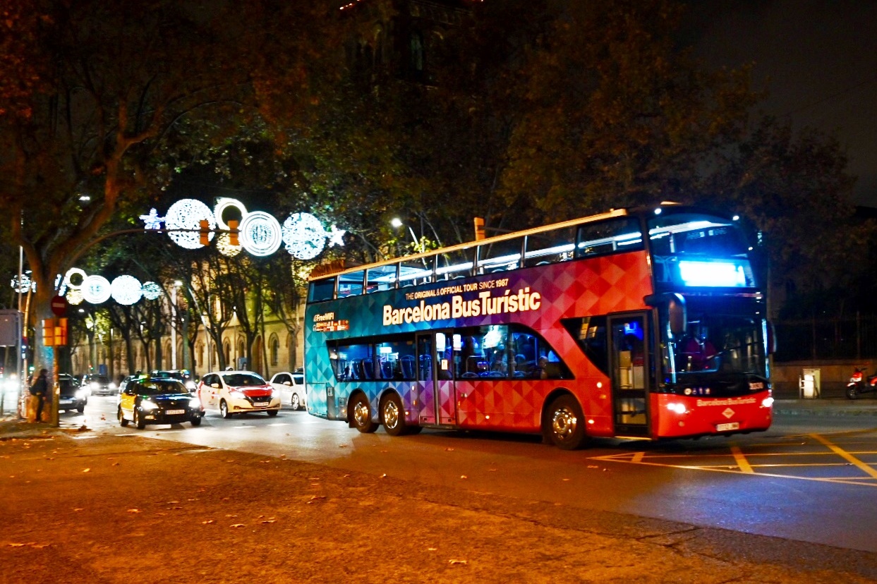 Aprofitant l’encesa de llums de Nadal de Barcelona que va tenir lloc ahir al vespre, a partir d’avui divendres 27 de novembre i fins al 27 de desembre (durant 17 dies) es posa en marxa aquest servei de bus que funcionarà tots els vespres de dijous a diumenge. La ruta permet descobrir els cèntrics carrers de la Ciutat Comtal il·luminats amb els llums de Nadal des d’una perspectiva insòlita, des del pis superior descobert d’un autobús turístic. A més, a bord del bus els informadors explicaran en dos idiomes (català i castellà) les històries i els secrets més ben guardats dels punts d’interès, tot amanit amb música d’ambientació de Nadal que acompanyarà els passatgers durant tota la ruta.