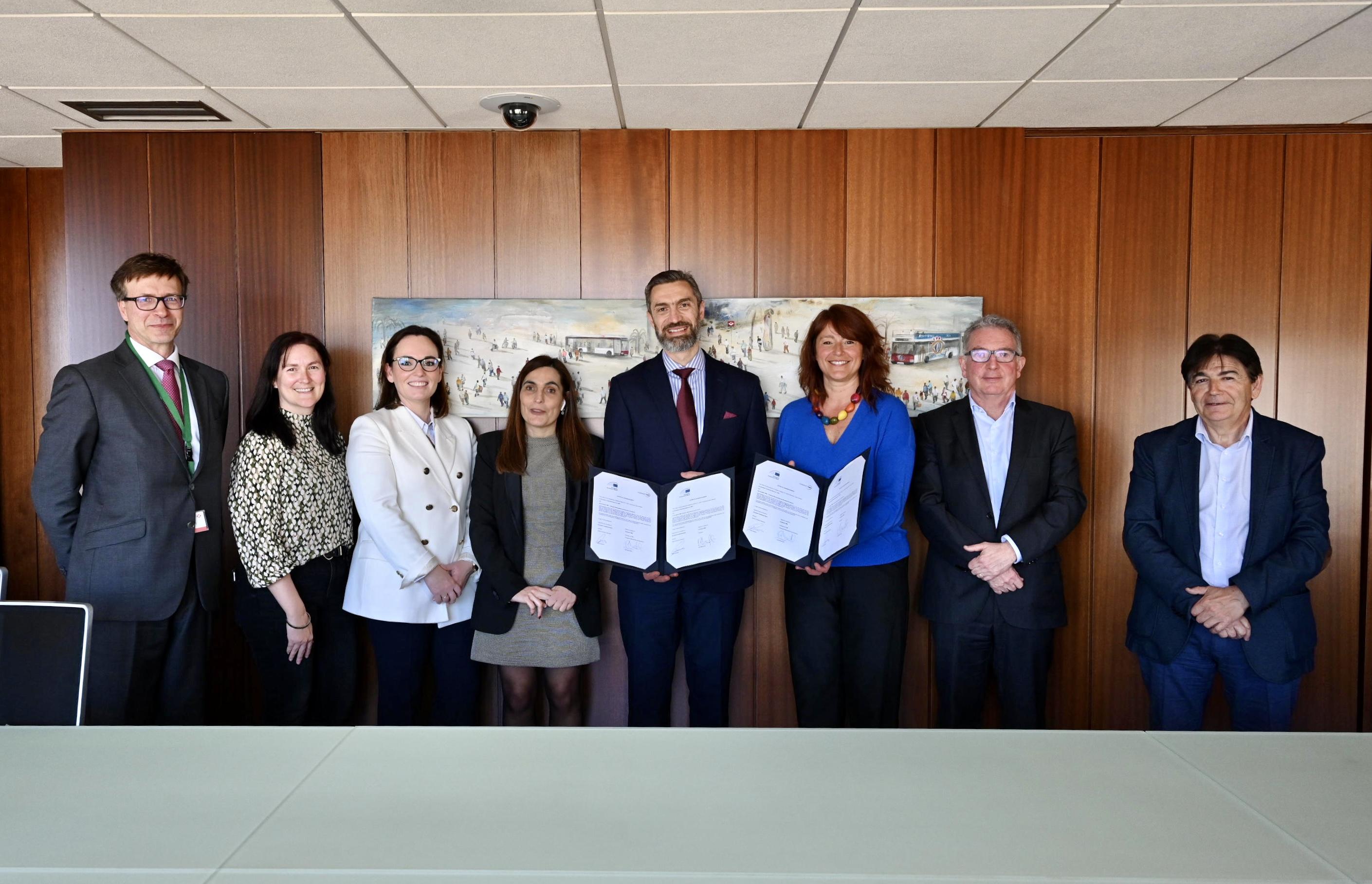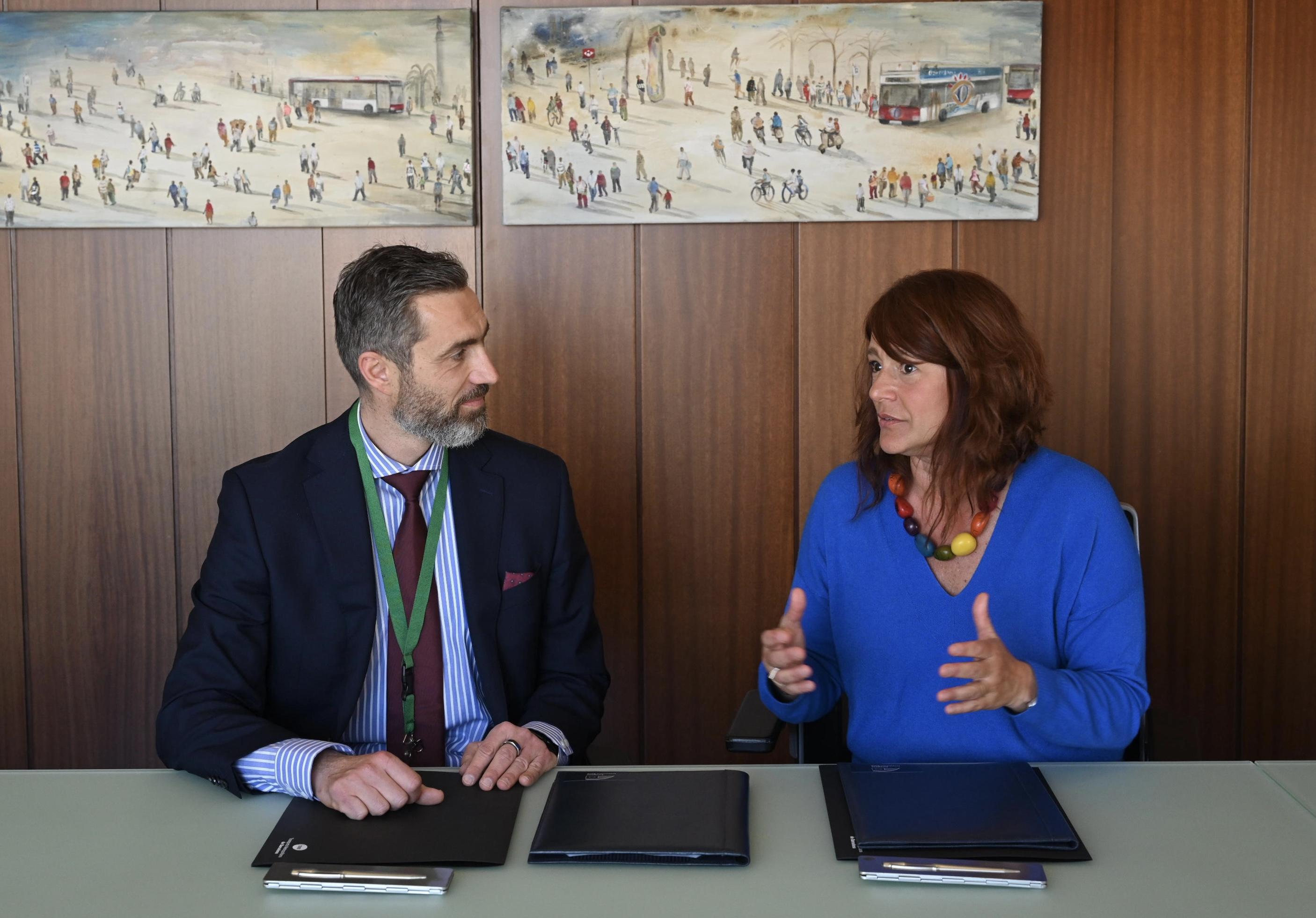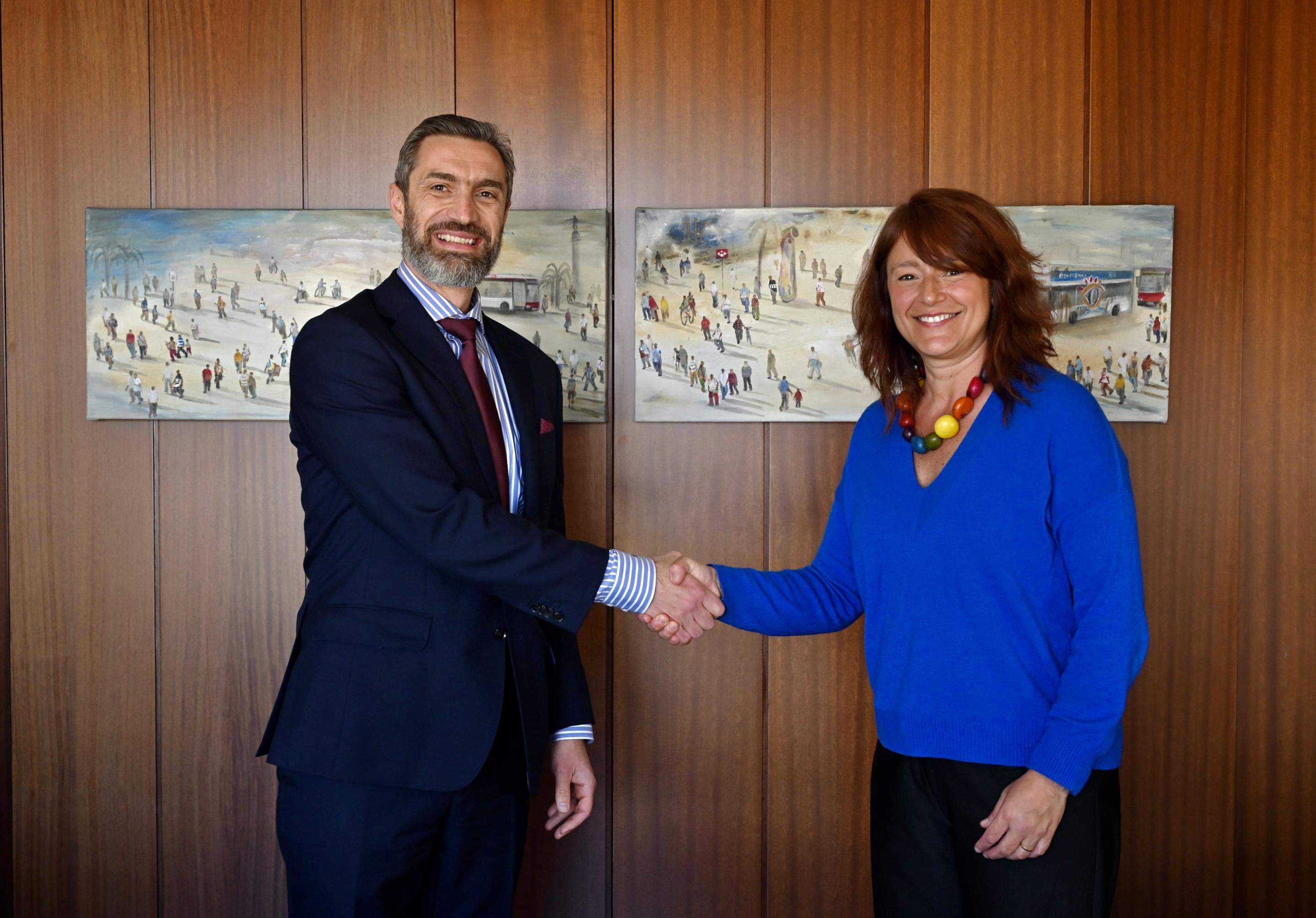El director del Banc Europeu d'Inversions (BEI), Hristo Stoykov, i la presidenta de Transports Metropolitans de Barcelona (TMB), Laia Bonet, han signat un Acord de Serveis d'Assessorament per impulsar el desenvolupament dels plans de prevenció d'assetjament de la xarxa de transport de TMB. Aquest acord d'assessorament se signa en el marc del projecte de finançament de 50 milions d'euros compromesos pel BEI per a l'adquisició de nou material mòbil que millorarà el sistema de transport metropolità de Barcelona.