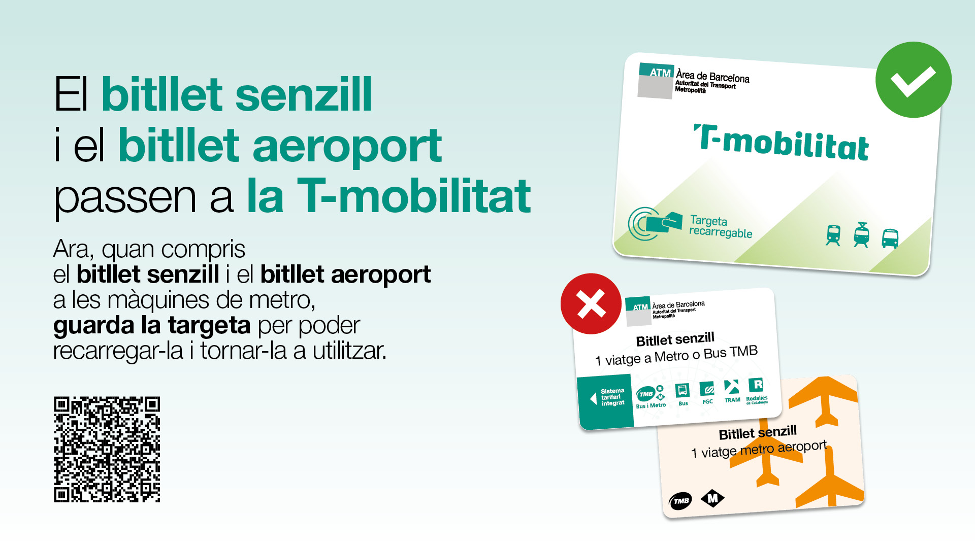 A partir d’ara si l’usuari esporàdic de metro o bus compra per primera vegada un bitllet senzill o bitllet aeroport en una distribuïdora de metro, aquest s’expedirà en suport T-mobilitat de cartró, una targeta anònima recarregable i reutilitzable per validar sense contacte. Aquest primer cop caldrà pagar un euro addicional (el cost del suport), a banda del preu del bitllet senzill o del bitllet aeroport. Una vegada utilitzat el títol es podran carregar altres bitllets de transport en aquesta mateixa targeta com la T-casual, la T-familiar i la T-grup. A més, els clients podran recarregar bitllets senzills en les targetes de plàstic o cartró que ja tenen, a les màquines automàtiques del metro. Pròximament, també ho podran fer a través de TMB App i a la cartera electrònica per validar directament amb el mòbil.