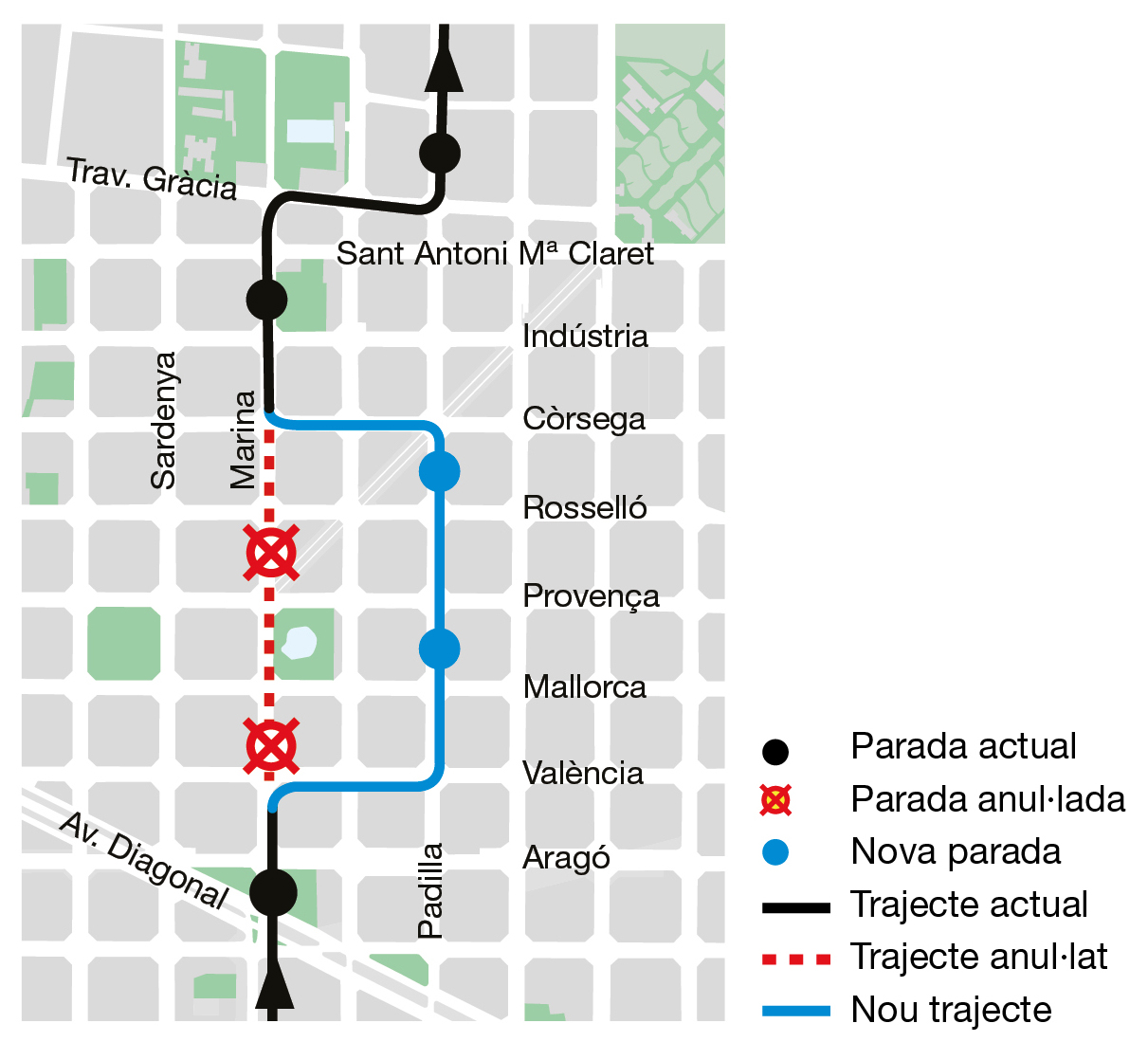 A partir de demà, la línia variarà lleugerament el recorregut en sentit ascendent i modificarà dues parades, que quedaran ubicades al carrer Padilla.