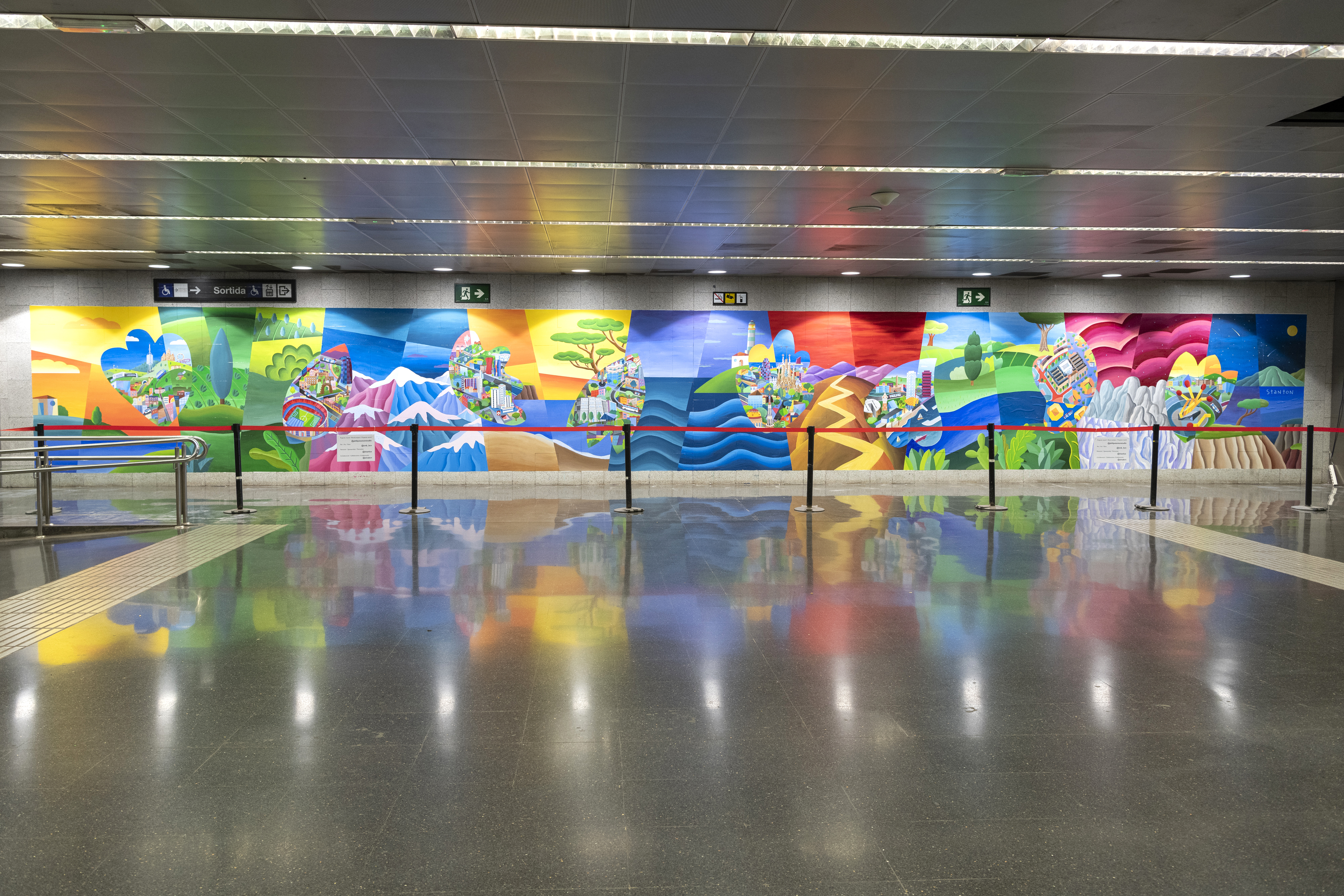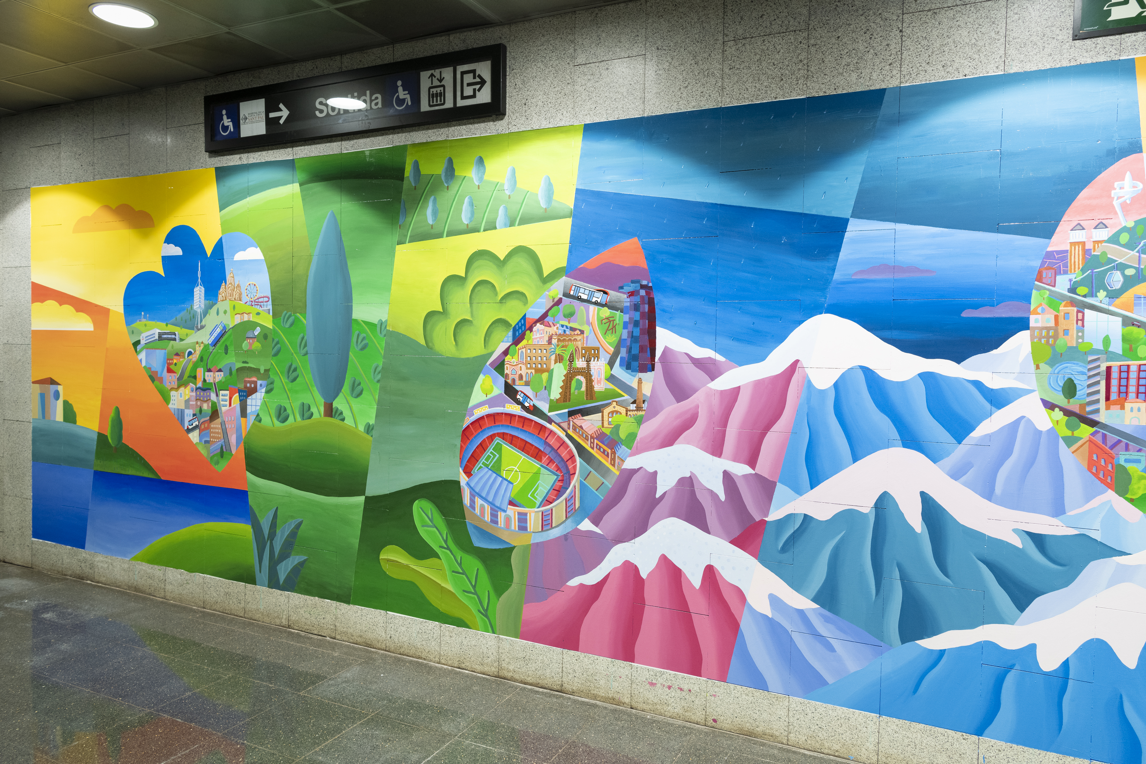 El colorista mural de Philip Stanton que homenatja els sanitaris ja llueix al metro