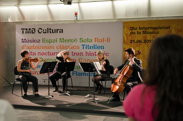 Aquest dimecres, 20 de juny, amb motiu del Dia Internacional de la Música (que se celebra arreu del món el 21 de juny), Transports Metropolitans de Barcelona (TMB) ha organitzat, en coordinació amb L’Auditori i l’Orquestra Simfònica de Barcelona i Nacional de Catalunya, una actuació que anirà a càrrec d’un quintet de músics de l’Orquestra Simfònica de Barcelona i Nacional de Catalunya (OBC).