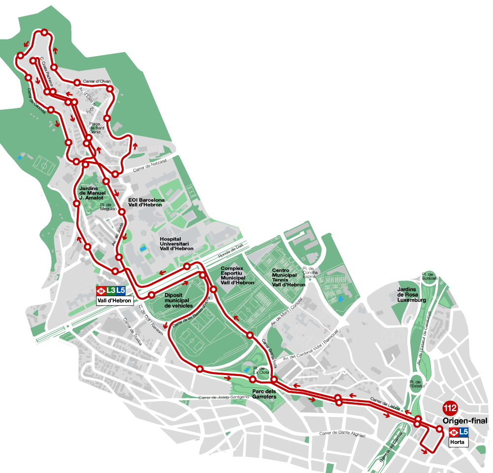 La línia 112 ja va circular a Sant Genís entre el 1998 i el 2013, any en què la 185 va absorbir el seu recorregut. A partir del dia 7, connectarà de nou el barri de Sant Genís amb el d’Horta, passant per diversos equipaments com l’Hospital Universitari de la Vall d’Hebron o el mercat d’Horta, i enllaçarà amb els transports d’alta capacitat a Vall d’Hebron (metro L3 i L5, línies H4 i V15 de la nova xarxa de bus) i Horta (metro L5). En total tindrà 38 parades.