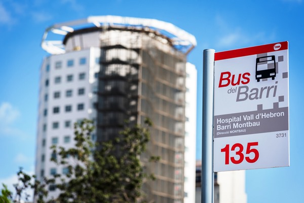 Una de les parades del bus del barri 135 situada davant de l'Hospital de la Vall d'Hebron / Foto: Pep Herrero (TMB)