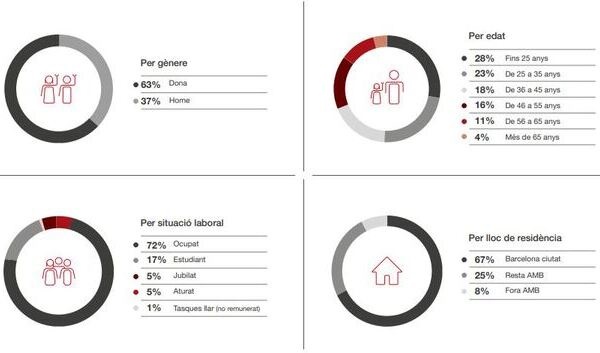 Dones de fins a 35 anys i residents a Barcelona, perfil de les persones usuàries de bus i metro