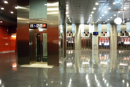 El vestíbul, d’uns 300 metres quadrats de superfície, disposa de 4 màquines de venda de bitllets i 7 validadores, una de les quals per a persones amb mobilitat reduïda. Des d'aquest nivell es baixa mitjançant escales fixes i mecàniques a un segon vestíbul, situat a un nivell inferior, a 6 metres de profunditat, on hi ha els ascensors de gran capacitat que comuniquen amb la preandana. Per la seva banda, les andanes s’han construït superposades. Pel nivell inferior circulen els trens en sentit Can Zam, i pel superior, en sentit La Sagrera.
