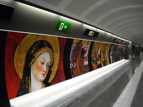 A l'estació de La Sagrera hi haurà reproduccions de la col·lecció d'art del Renaixement i el barroc, i a l'andana de Can Peixauet s'exhibiran obres de la col·lecció d'art gòtic. Finalment, l'andana de l'estació de Fondo acollirà obres de la col·lecció d'art romànic, una de les màs emblemàtiques del MNAC per l'excepcional sèrie de conjunts de pintura mural, única al món, que conserva.
