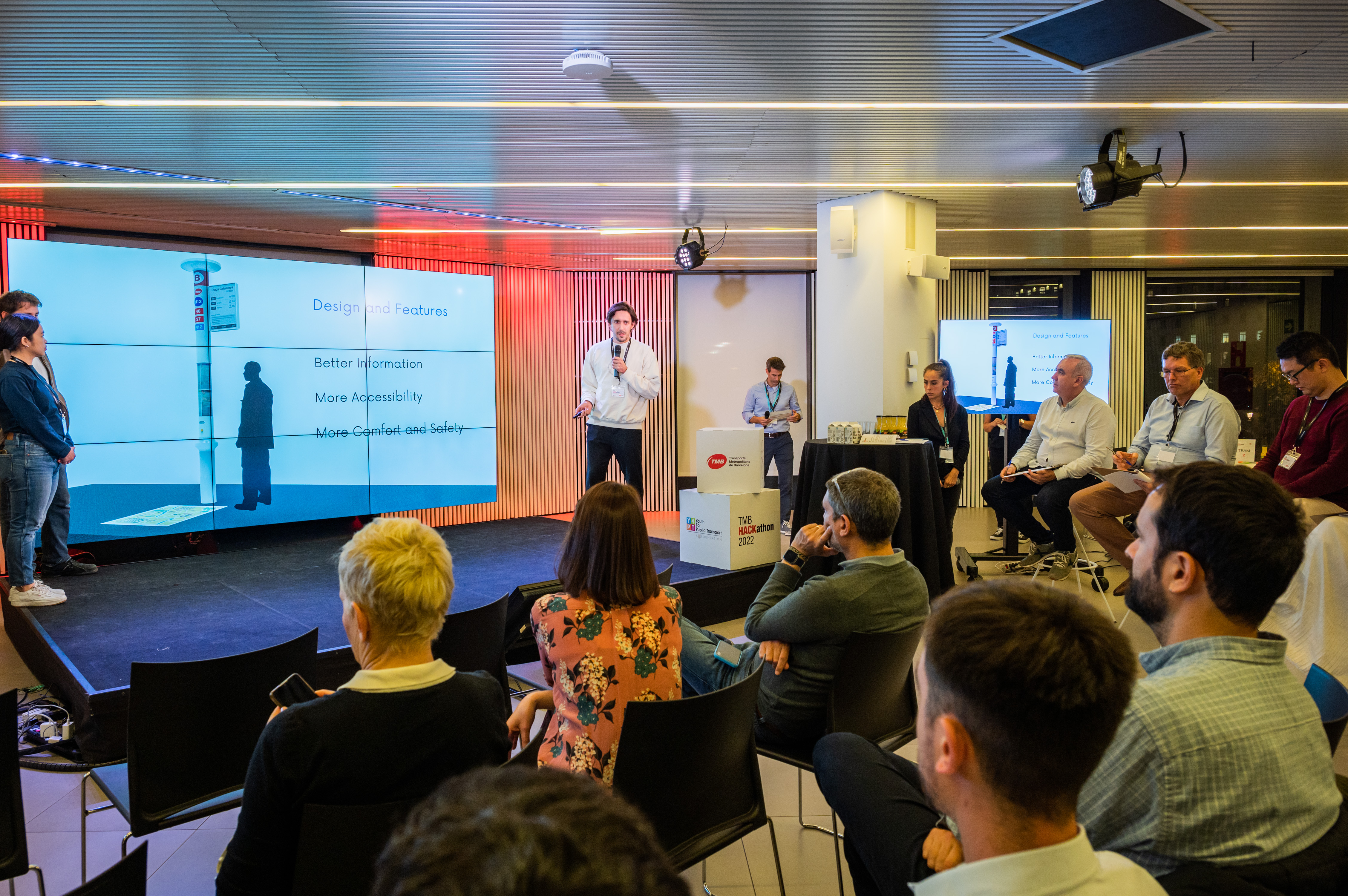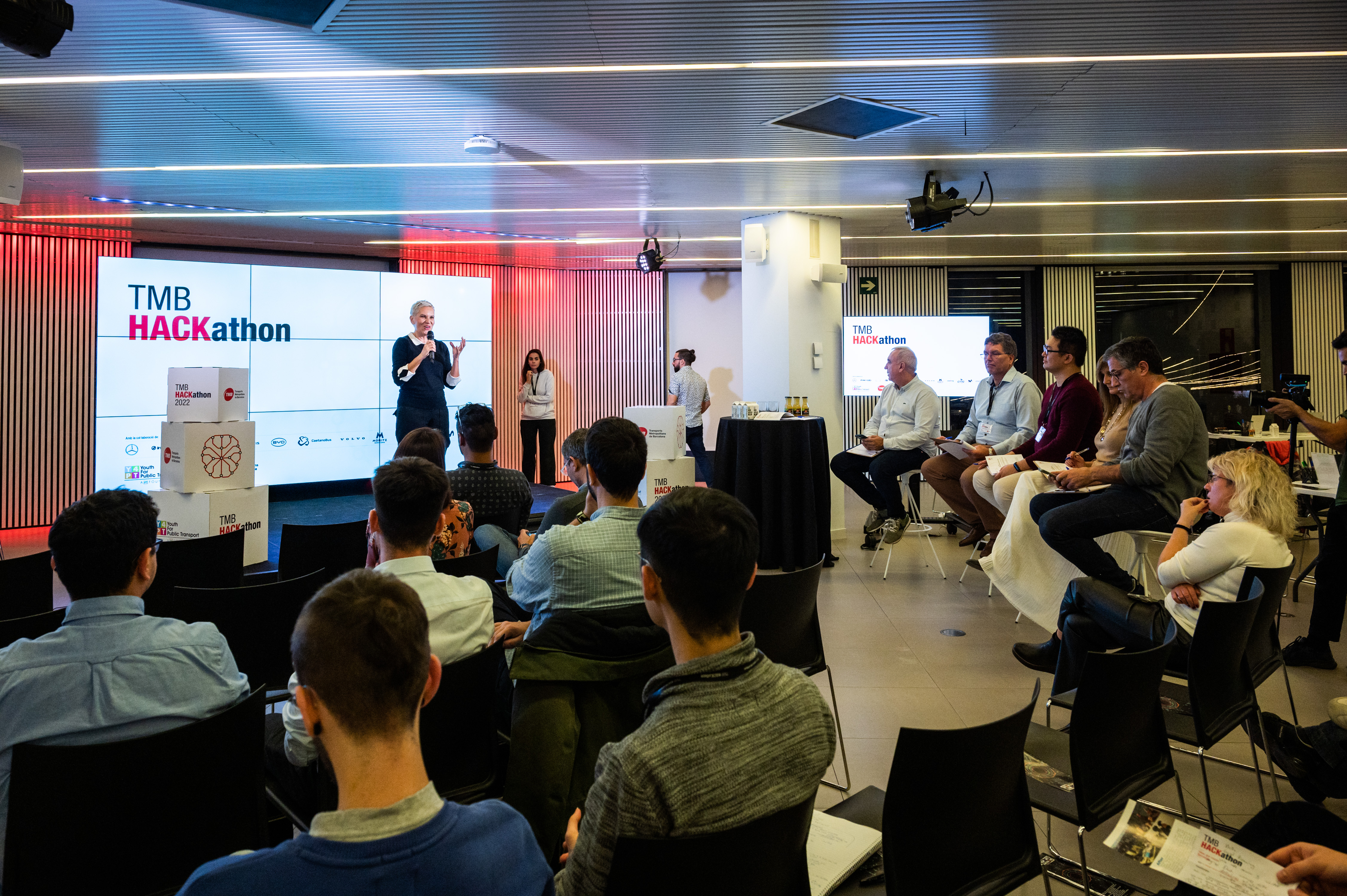 La Hackató s’ha celebrat al Movistar Centre de Barcelona els dies 25 i 26 de novembre, dues jornades durant les quals s’han realitzat diferents exercicis per desenvolupar la creativitat. El jurat ha estat format per la directora de serveis corporatius de TMB, Cristina Güell; el director de Bus de TMB, Jacobo Kalitovics; el gerent de la Tercera Tinença, de l’Àrea d’Agenda 2030, Transició Digital, Coordinació Territorial i Esports d’Alcaldia de l’Ajuntament de Barcelona, Xavier Patón; el responsable tècnic de vendes d'Evobus Iberica, Holger Rudolf; i del departament de projectes de BYD, Meike Guo. Aquesta edició de la Hackató de TMB coincideix amb el centenari de la xarxa de bus de Barcelona que s’està commemorant des de TMB i que, en aquest acte, permetrà mostrar els contrastos des de com era el bus del 1922 fins a la projecció del bus del futur un segle després.