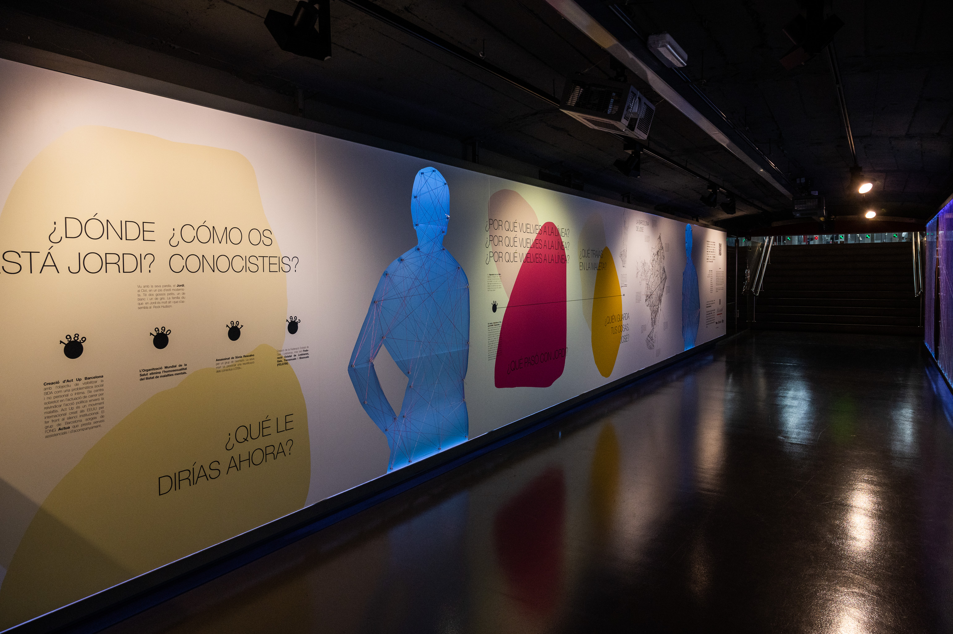 Així, Sants Estació es vincula a la identitat, La Sagrera farà referència a la família, Clot serà la intimitat, Catalunya, la feina, l’estació de Liceu fa referència a la lluita, Paral·lel al transformisme, Poble Sec és l’espectacle, Fontana es vincula als locals, l’estació de Diagonal a la ciutat i Hospital Clínic a la sida.