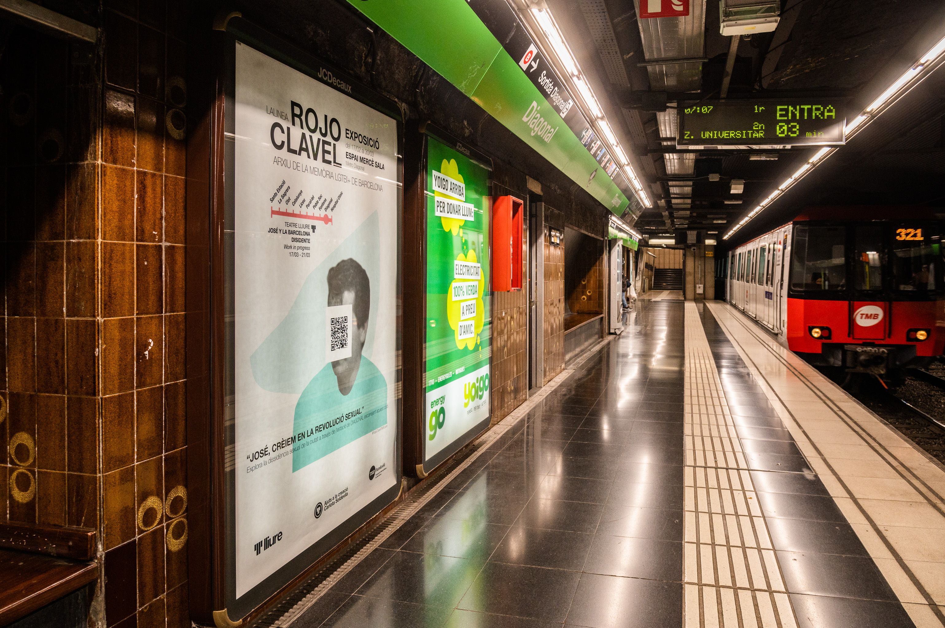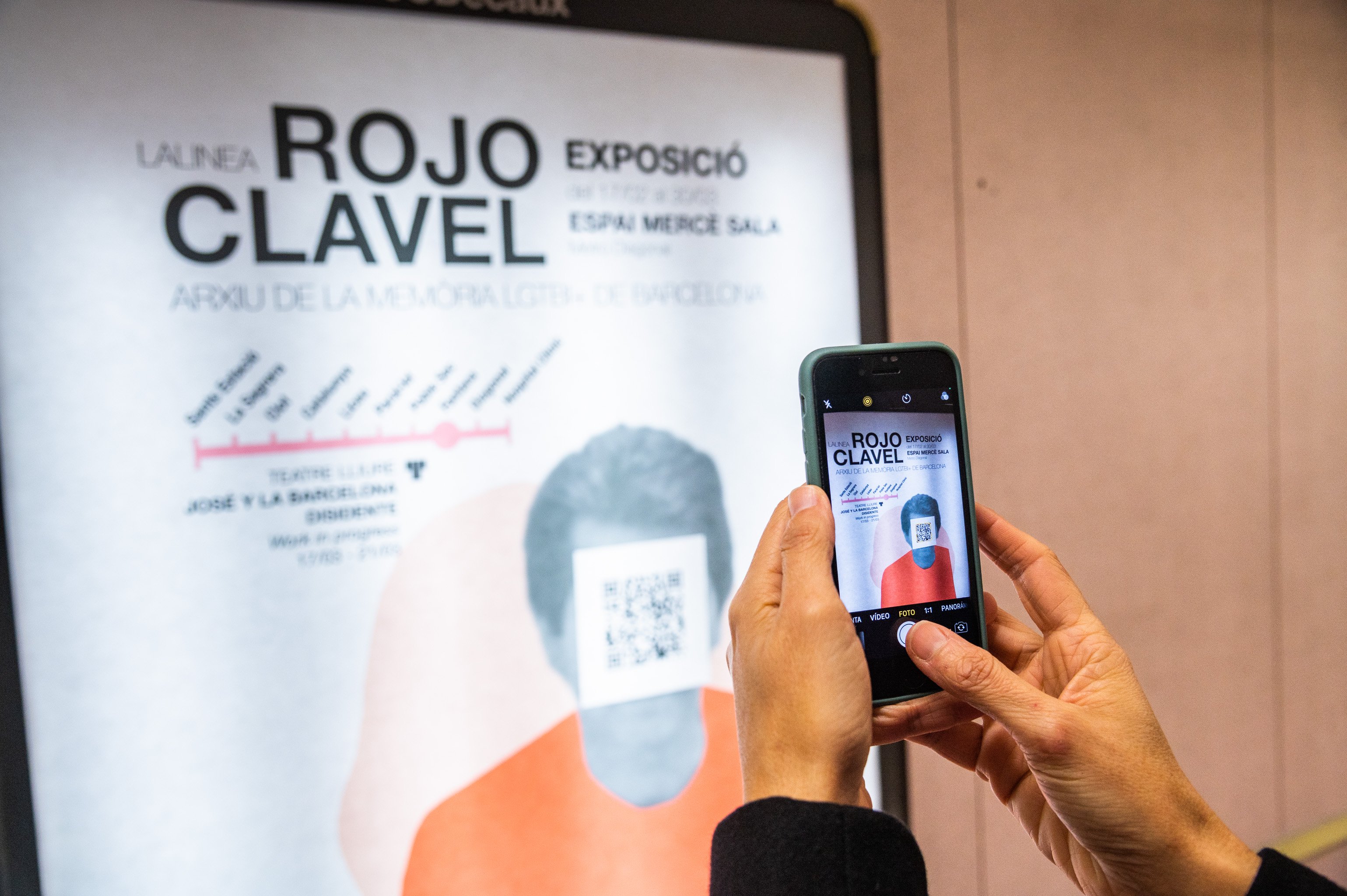 L’Espai Mercè Sala, la sala d’exposicions del metro de l’estació de Diagonal, acull Rojo Clavel, una mostra complementària a l’acció dels QR que fa un recorregut cronològic per la vida de José Tenorio, des de la seva arribada a Barcelona el 1971 fins al seu retorn a la ciutat de La Línea de la Concepción, Cadis, el 1993. La vida d’aquest interessant personatge es relaciona amb la història del moviment LGTBI a la capital catalana durant aquest període.