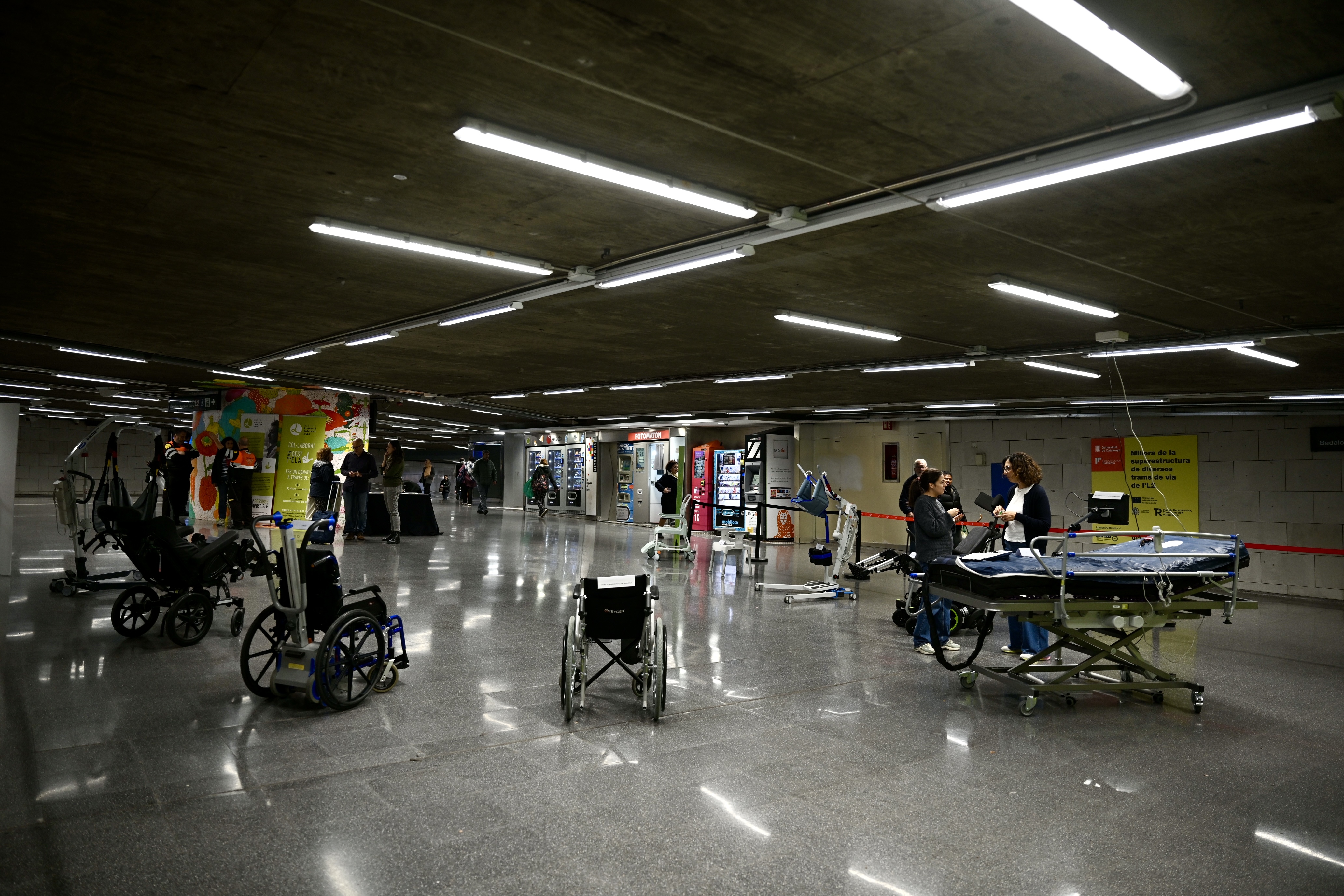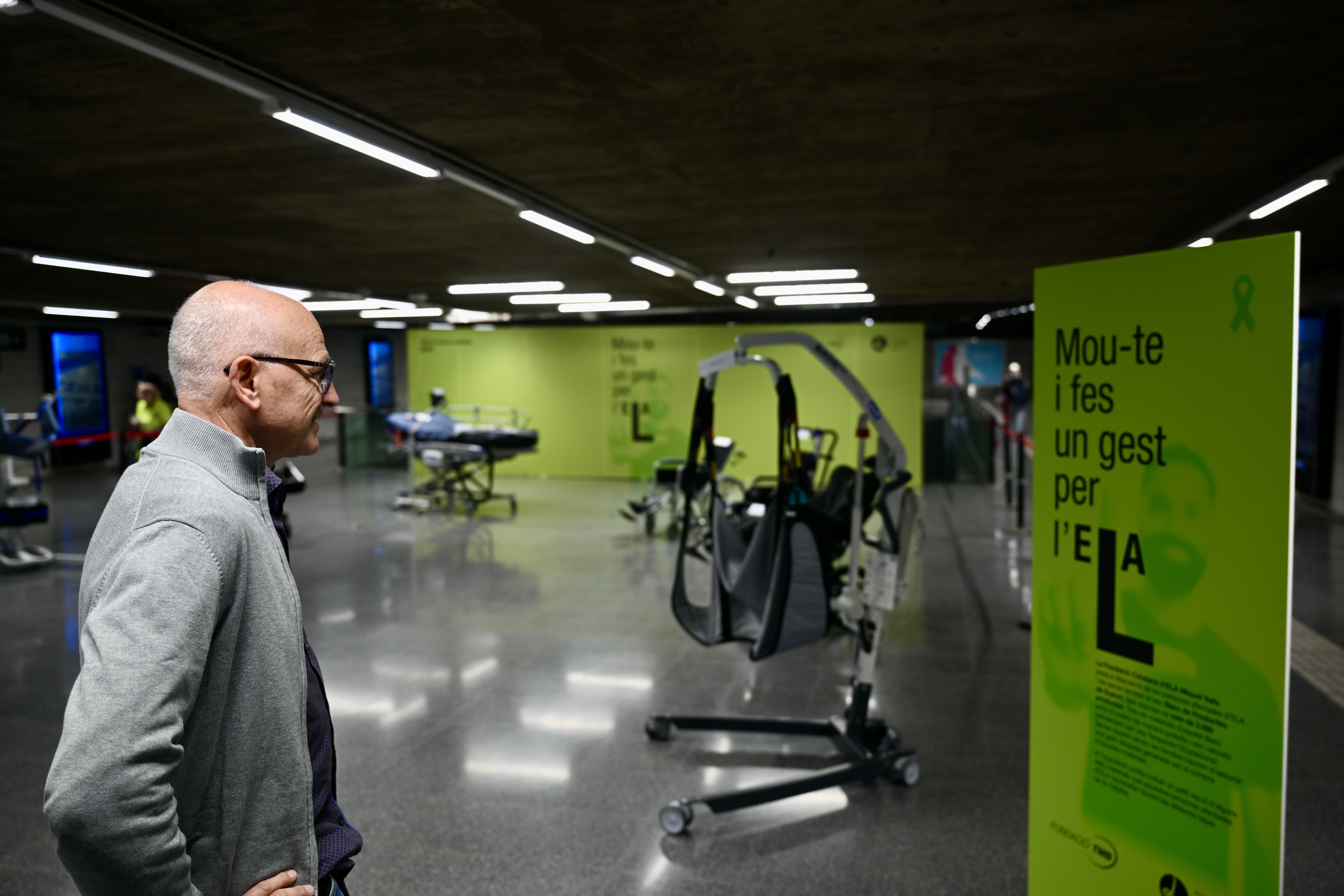 Durant tota la jornada, també a l’estació de metro Universitat, s’ha exposat una mostra del material que els malalts i les malaltes d’ELA van necessitant a mida que la patologia avança. L’ELA provoca una progressiva paràlisi que afecta les activitats motores, però també la parla, la deglució i la respiració. L’exposició mostra la càrrega que per a afectats i famílies suposa un diagnòstic d’ELA.