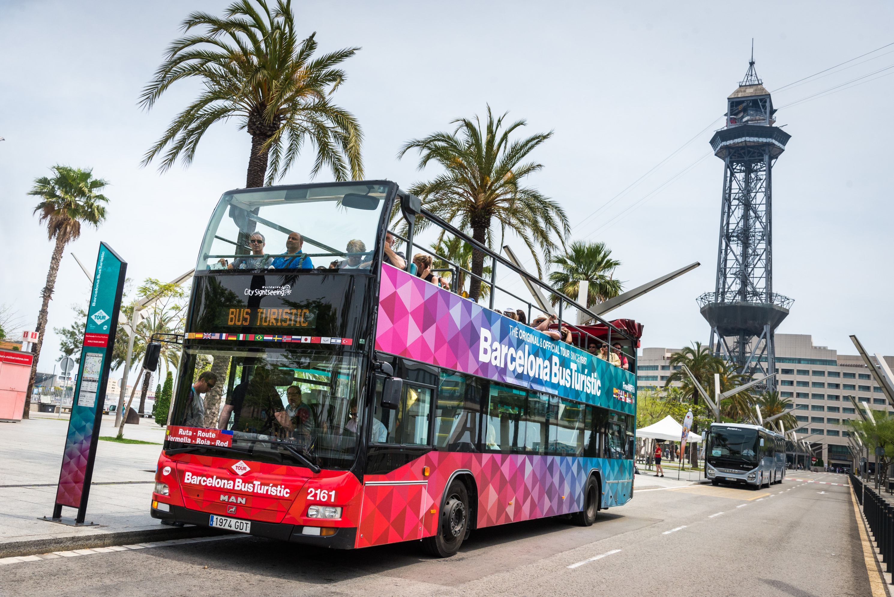 Imatge Barcelona Bus Turístic a la parada World Trade Center < >Barcelona Bus Turístic a la parada World Trade Center>