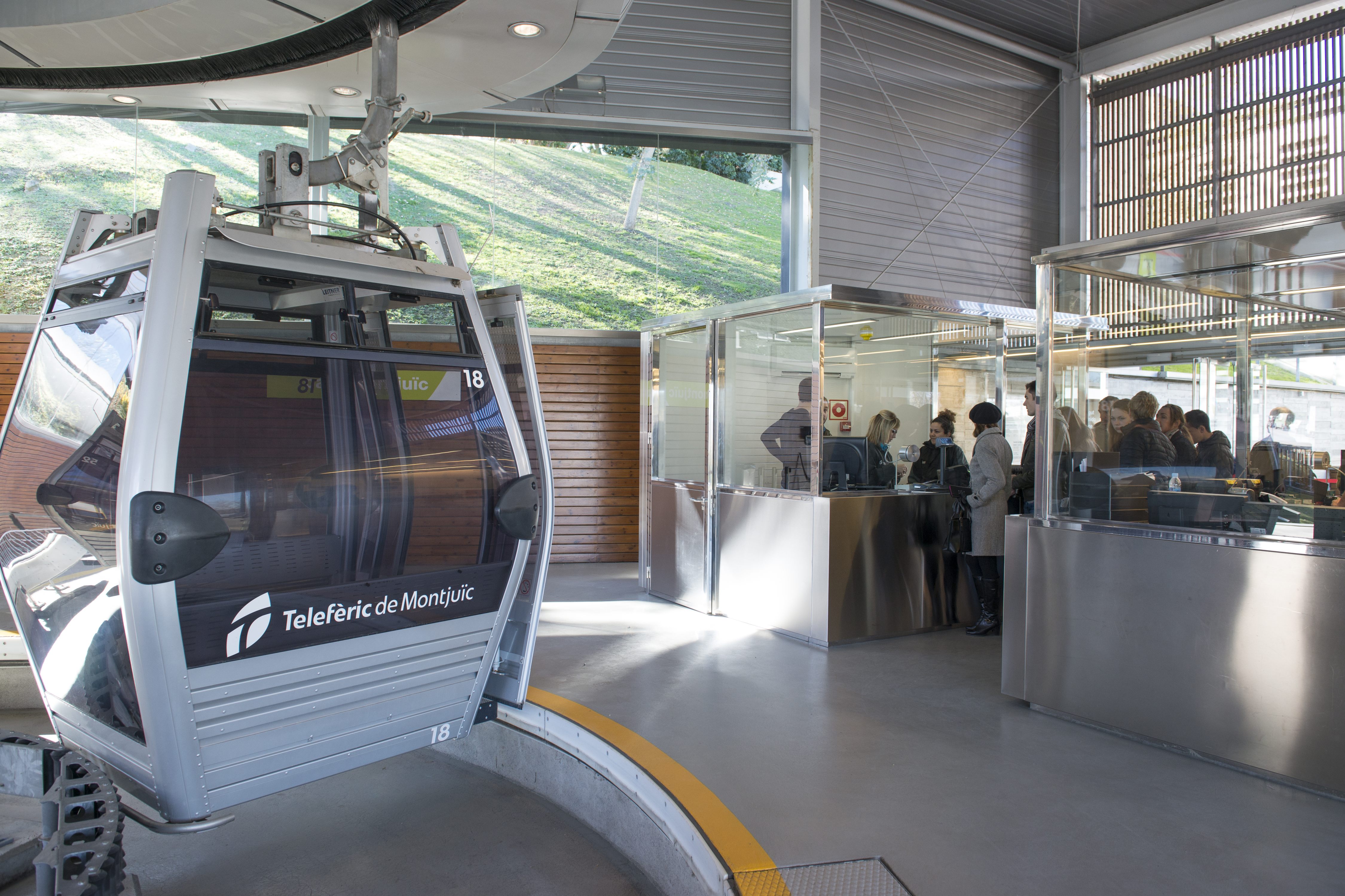 Imatge Vista general de l'estació Parc de Montjuïc del funicular de Montjuïc de TMB < >Vista general de l'estació Parc de Montjuïc del funicular de Montjuïc de TMB>