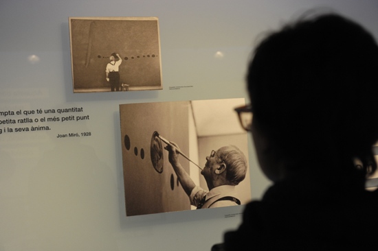 Els visitants hi poden trobar paraules de Miró relacionades amb algunes fotografies que s’hi exhibeixen complementades amb reproduccions d’obres cabdals de la seva trajectòria que acosten la seva manera de treballar i d’entendre la pintura i la seva relació amb París i Catalunya, especialment amb Mont-Roig.