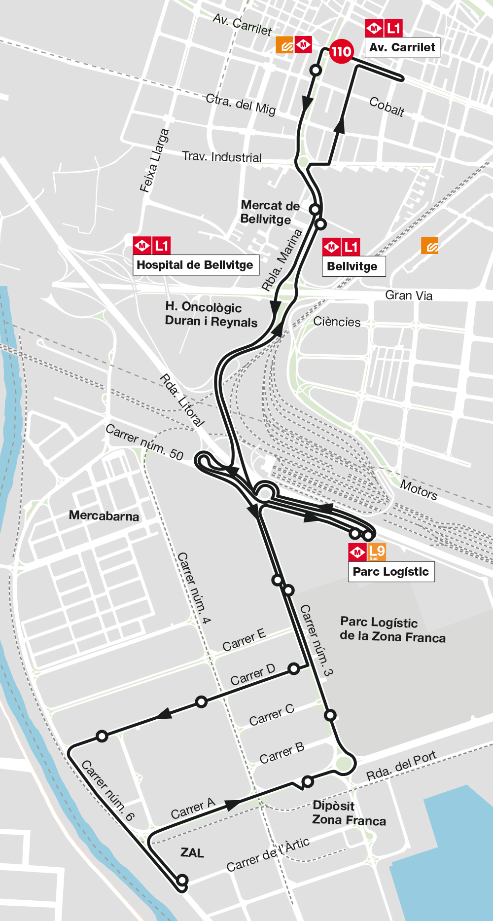A partir de demà dimarts, 22 de març, la línia 110 (Metro Carrilet - Polígon Industrial Zona Franca) de la xarxa d’autobusos de Transports Metropolitans de Barcelona (TMB) modificarà el recorregut al seu pas pel Parc Logístic de la Zona Franca, amb dues noves parades per facilitar la connexió amb la línia 9 Sud de metro, que des del 12 de febrer té una estació en aquesta zona d’activitat econòmica.