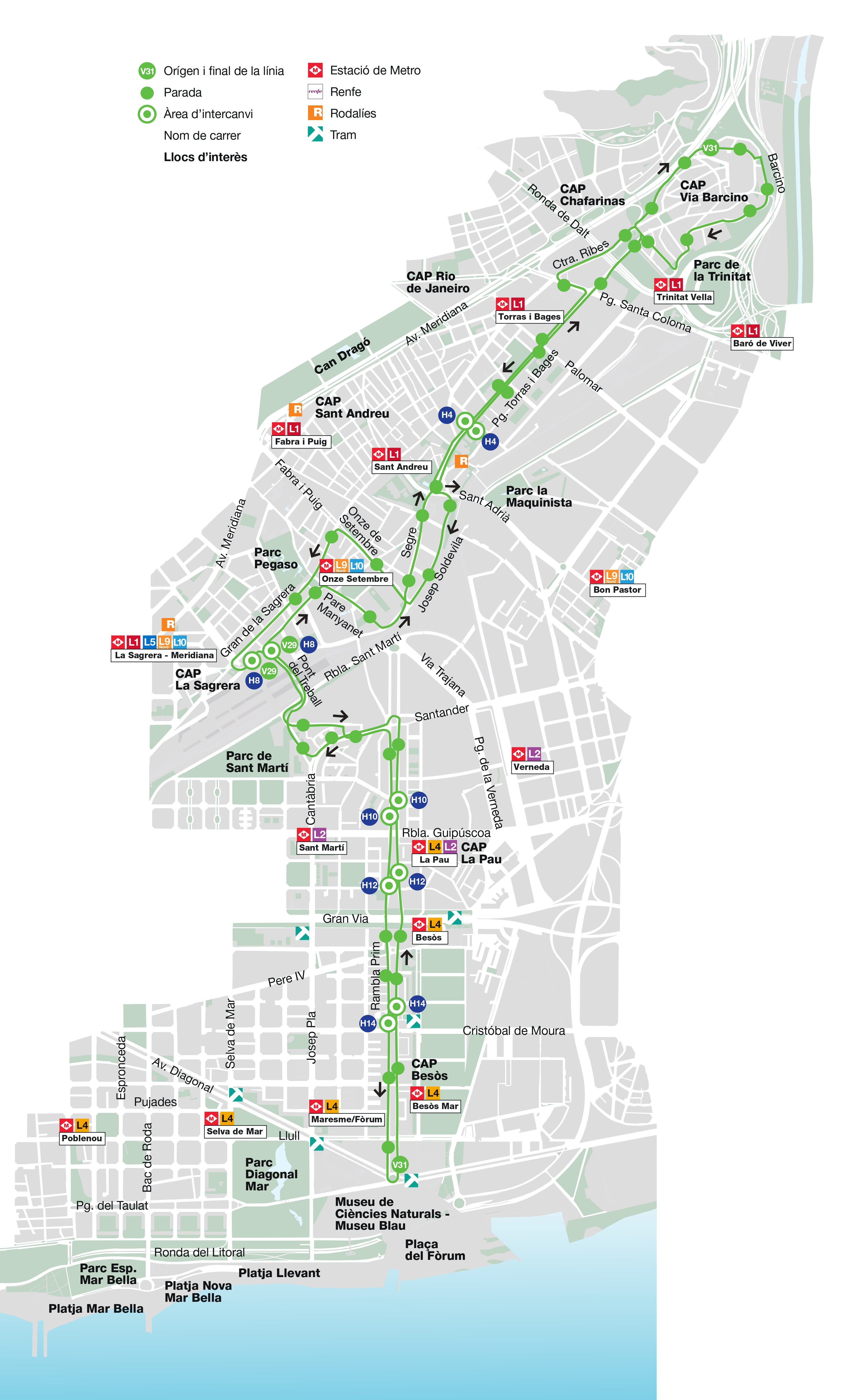 Les modificacions al recorregut vindran acompanyades de la creació de dues noves parades a la Plaça Llevant i al carrer Eduard Maristany, i que generaran un nou punt d’intercanvi amb la línia H16 i amb la línia T4 del TRAM.