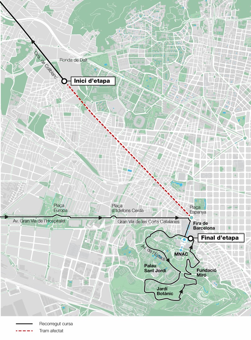 Amb motiu de la disputa de la setena i última etapa de la 96a edició de la Volta Ciclista a Catalunya, diumenge 27 de març, al matí, entre l’Hospitalet de Llobregat i la muntanya de Montjuïc de Barcelona, diverses línies de bus veuran modificat o limitat el recorregut a mesura que avanci la cursa, entre les 10.00 i les 15.00 hores, pel Prat, l’Hospitalet, la Gran Via, la plaça Espanya i Montjuïc.