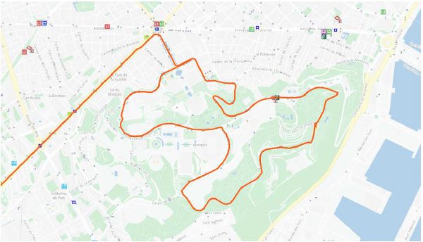 La Volta sortirà de forma neutralitzada des de l’av. Reina Maria Cristina a les 10.30 hores en direcció a pl. d’Espanya i carrers Creu Coberta i Moianès, per arribar a la Gran Via i continuar amb direcció als municipis de L’Hospitalet, El Prat, Sant Boi, Cornellà, Sant Vicenç dels Horts, Avinyonet del Penedès, Olesa de Bonesvalls, Begues, Gavà i Castelldefels, tornant cap a la ciutat de Barcelona per l’autovia de Castelldefels, pl. de Cerdà i, novament per la Gran Via, arribar a pl. d’Espanya, av. Reina Maria Cristina i av. Rius i Taulet, on s’inicia el circuit de sis voltes pel parc de Montjuïc i finalitza l’etapa.