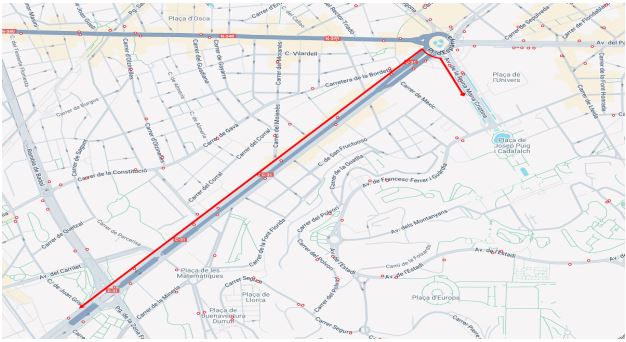 La Volta sortirà de forma neutralitzada des de l’avinguda Reina Maria Cristina a les 10.55 hores en direcció a plaça d’Espanya per arribar a la Gran Via i continuar amb direcció als municipis de L’Hospitalet, El Prat, Sant Boi, Viladecans Gavà i Castelldefels, tornant cap a la ciutat de Barcelona per l’autovia de Castelldefels, pl. de Cerdà i, novament per la Gran Via, arribar a pl. d’Espanya, av. Reina Maria Cristina i av. Rius i Taulet, on s’inicia el circuit de sis voltes pel parc de Montjuïc i finalitza l’etapa.
