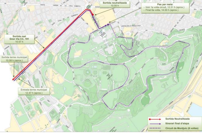 Aquest avançament horari permet facilitat el desmuntatge i, així, regular de forma més efectiva l’arribada massiva de públic a l’Anella Olímpica posteriorment, però implica retallar l’etapa prevista a excepció de les sis voltes al circuit de Montjuïc, que es mantindran com en d’altres edicions per tal de viure l’espectacle ciclista a la Muntanya Màgica. D’aquesta manera, l'entrada a Barcelona serà cap al migdia, i la finalització de l’etapa al voltant de les 13 hores.