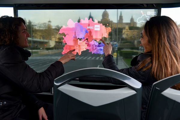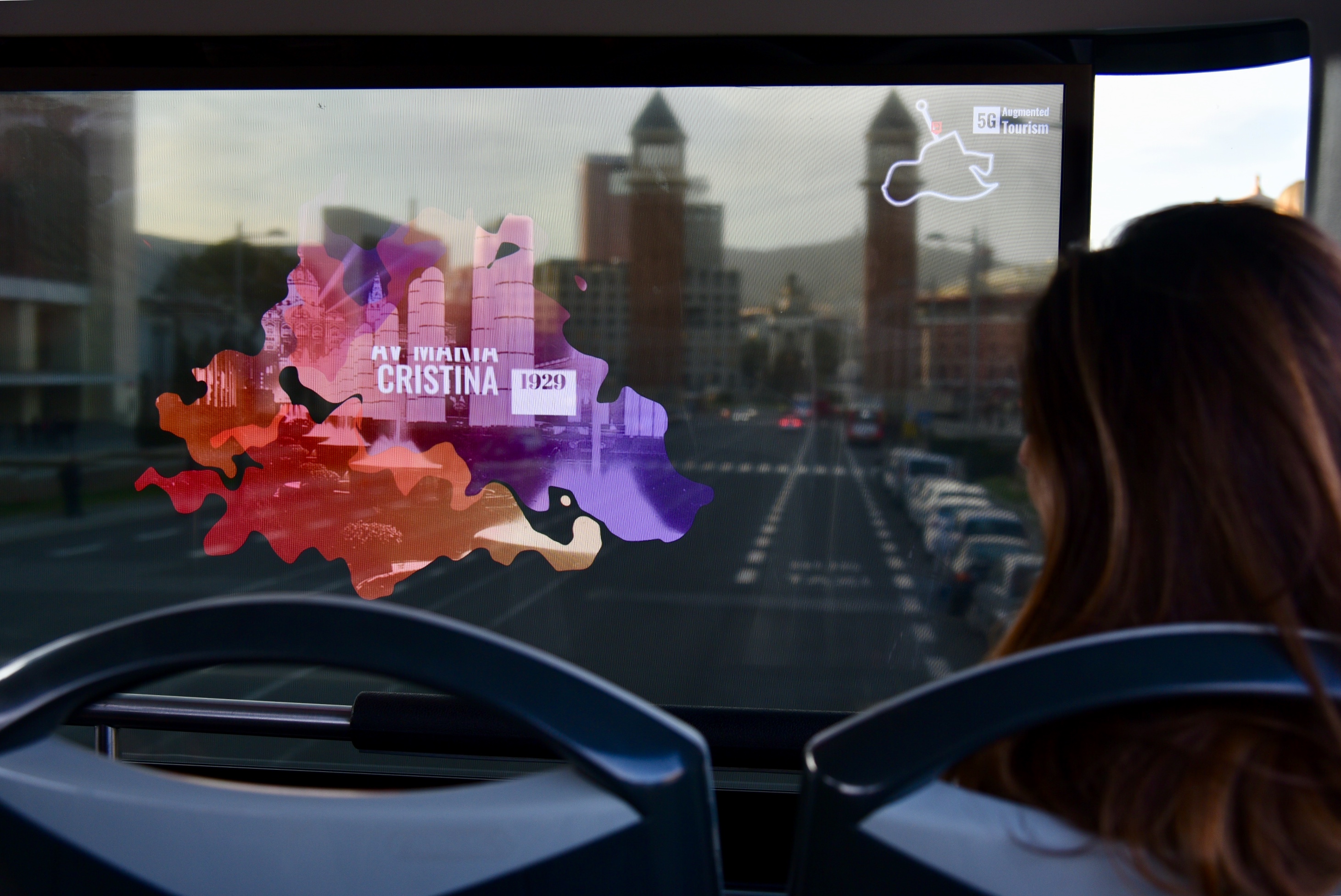 El grup Mediapro, Telefónica i Transports Metropolitans de Barcelona (TMB) han desenvolupat el primer projecte de realitat augmentada 5G que permet als passatgers d’un autobús turístic visualitzar continguts immersius a la finestra davantera del vehicle, de manera superposada al paisatge o als monuments que observen mentre realitzen un tour.
