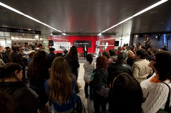 La mostra s’anomena ‘En un món anònim’ i ha comptat amb la participació d’alumnes de Belles Arts de la UB. Del 24 al 26 de novembre, l’estació d’Universitat acull la 9a edició del Festival de Músics al Metro amb actuació d’Els Catarres
