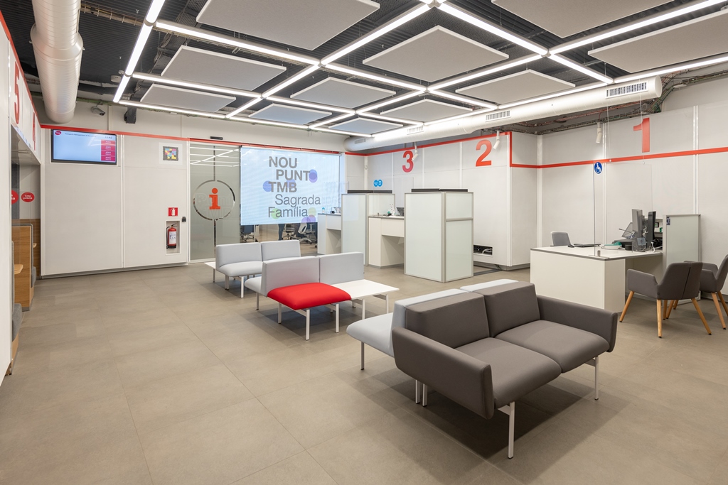 El Punt TMB Sagrada Família s’ha dissenyat sota el concepte disseny per a tothom, com un espai pensat per atendre els usuaris d’una forma moderna, propera, eficient i totalment accessible. El disseny interior respira un ambient acollidor, amb una zona d’espera accessible, expositors, mobiliari adaptat i diferents mostradors per fer una atenció polivalent, més acollidora i propera. Hi haurà un mostrador exclusiu per a l’atenció especial, adaptat per interactuar amb el client. Tots els espais i el mobiliari han estat dissenyats seguint i complint la normativa vigent en matèria d’accessibilitat.