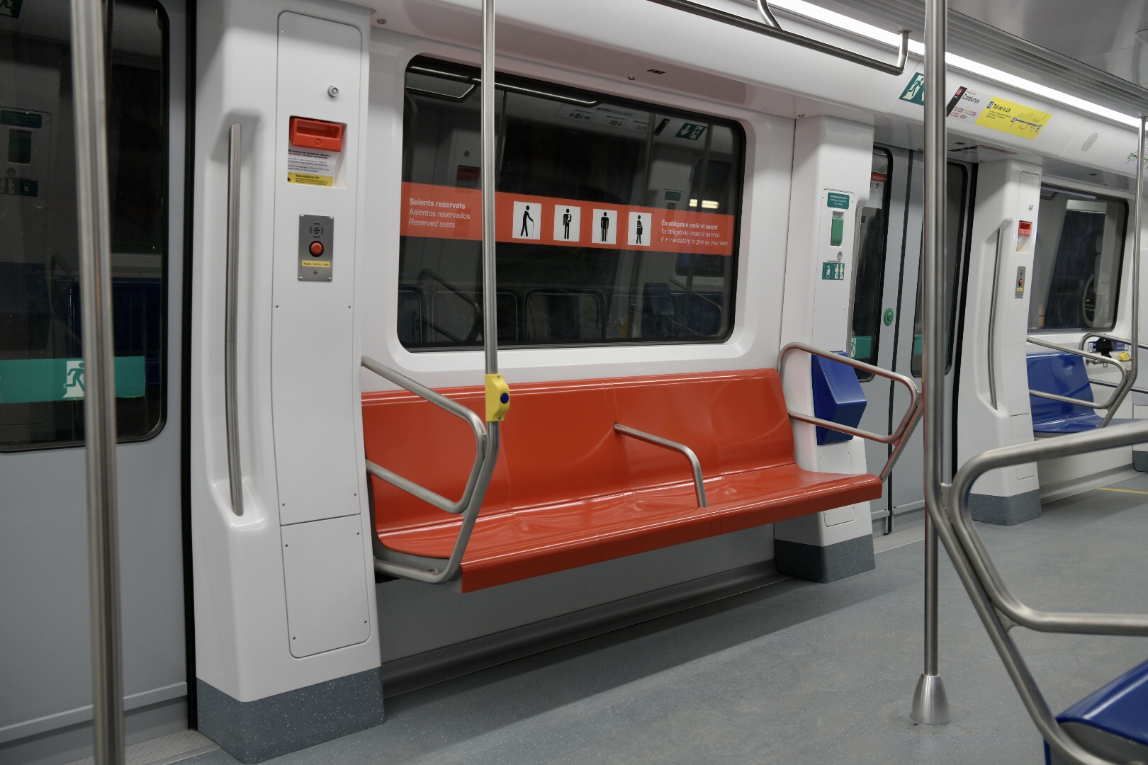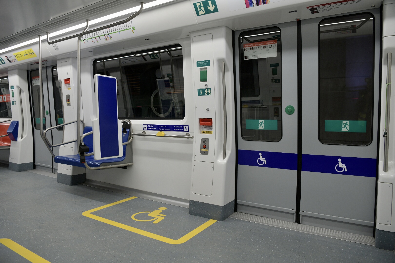 - No existiran barres verticals enfrontades a les portes accessibles, cosa que evitarà un obstacle per als usuaris de cadires de rodes. En el seu lloc, es col·locaran barres de subjecció al sostre i en els paraments verticals de l'entorn per garantir la seguretat dels passatgers.