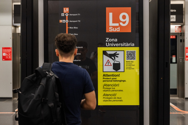La nova senyalització, amb vinils de petit i gran format, té com a objectiu posar sobre avís a les persones usuàries davant de possibles furts amb visuals i missatges en 3 idiomes (català, castellà i anglès). Els cartells de gran format es poden trobar a 3 vitrines de les estacions d’Aeroport T1 i T2 i als ascensors de Collblanc i Torrassa, i incorporen un codi QR que permet l’accés als consells de seguretat del Cos de Mossos d’Esquadra.