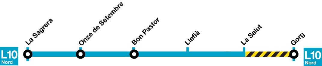 Des d’aquest dilluns 5 d’agost i fins al diumenge 25 d’agost (tots dos inclosos), estarà fora de servei el tram de la línia 10 Nord de metro que uneix les estacions de La Salut i Gorg per renovar diversos aparells de via i reduir-ne les vibracions. Per tant, l’estació de Gorg quedarà sense servei, mentre que La Salut, passarà a ser terminal provisional de la línia mentre durin els treballs i tindrà una andana en funcionament (en direcció La Sagrera), mentre que l’altra andana (sentit Gorg) estarà tancada. A la resta de la L10N, entre La Salut i La Sagrera, el servei de metro operarà amb normalitat.