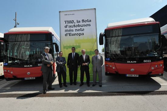 Amb la incorporació de 35 autobusos de gas natural comprimit i 25 híbrids, que substitueixen 60 cotxes dièsel amortitzats, TMB compleix aquest any els requisits de baixes emissions que marquen la normativa europea i els plans de millora de la qualitat de l'aire de la regió metropolitana de Barcelona per al transport públic de superfície. A més, la flota d'autobusos de TMB, integrada per 1.064 vehicles, s'ha situat així a l'avantguarda d'Europa pel que fa a respecte pel medi ambient, ja que tots compleixen els estàndards Euro 4, Euro 5 o superiors.
