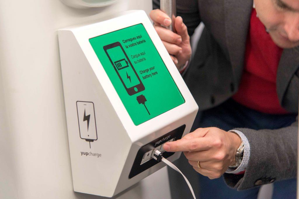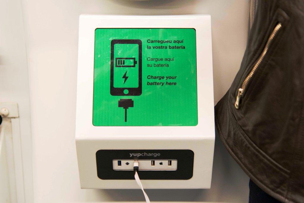 Dos trens de la línia 2 de metro han incorporat carregadors de dispositius mòbils d’alta potència que els usuaris poden utilitzar gratuïtament per reomplir les bateries dels seus dispositius mòbils. Es tracta de la segona part de la prova pilot que impulsa TMB de la mà de l’empresa catalana Yupcharge, companyia amb deu anys d’experiència en el sector de la càrrega per a mòbils i altres dispositius, per poder valorar si s’amplia més endavant al conjunt de la xarxa de metro de Barcelona.