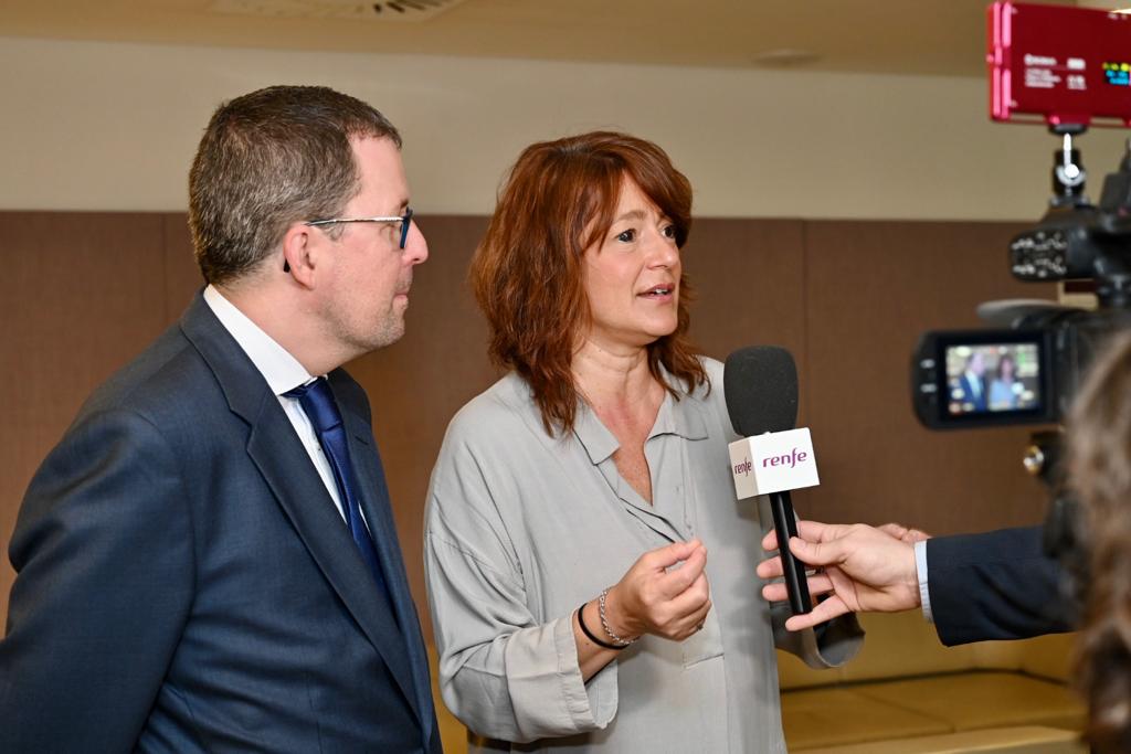 El president de Renfe, Raül Blanco, i la presidenta de Transports Metropolitans de Barcelona (TMB), Laia Bonet, han signat un acord de col·laboració per a integrar la contractació dels serveis turístics de TMB a la plataforma de mobilitat dōcō, impulsada per Renfe.