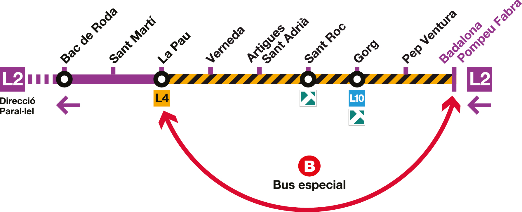 - ConceptesInformació al clientMobilitatObresServeiInfraestructuraViesInstitucionsTMBLlocsArtigues Sant AdriàBadalona Pompeu FabraGorgLa PauPep VenturaSant RocVernedaServeiL2MetroAnys2016