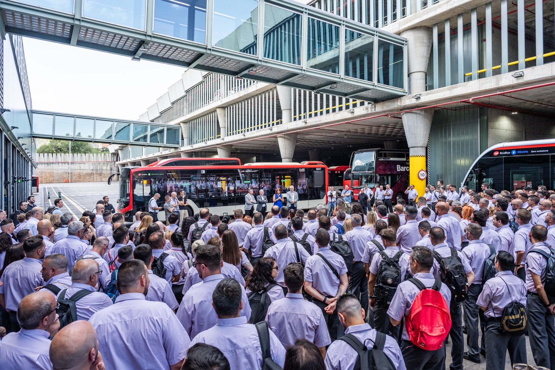 La presidenta de TMB Laia Bonet, acompanyada pel conseller delegat, Gerardo Lertxundi, el director de Bus, Jacobo Kalitovics, el director de l’àrea d’organització i persones, Carlos Jiménez i altres membres de la direcció de TMB han donat avui la benvinguda als 240 professionals que a partir de demà s’incorporen com a personal de conducció de bus. Aquestes incorporacions formen part d’un dels processos selectius més grans engegat per la direcció de l’àrea de bus i que va ser anunciat a principis d’any. De les 240 persones que s’han incorporat, el 26% són dones. Amb aquest contingent, la xifra de dones conductores s’incrementa en un 21,2%, passant de 297 a 360. Així, s’avança un pas més en la incorporació del talent femení que TMB està compromès a potenciar.