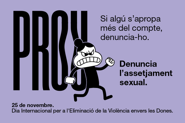 Amb el lema Prou. Denuncia l’assetjament sexual, la campanya desgrana comportaments que les dones poden patir i que no tenen per què admetre: comentaris irrespectuosos, acostaments excessius i en general qualsevol forma d’assetjament encara que no encaixi amb un tipus delictiu.