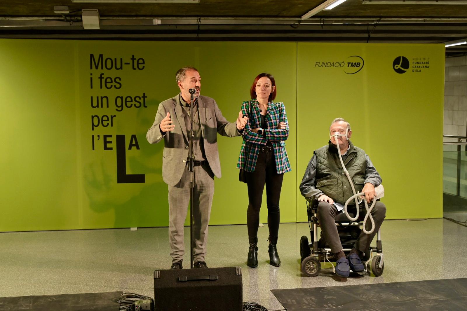 Avui en l’acte de presentació de la campanya al vestíbul de l’estació d’Universitat, el conseller delegat de TMB, Xavier Flores, ha explicat des de TMB “la raó de ser dels gairebé 9.000 treballadors de TMB és garantir la mobilitat, una mobilitat inclusiva que arribi a tothom i a tot arreu”. Flores ha destacat que “el Mou-te ens omple d’orgull perquè podem aportar una mica més” i que, en aquesta ocasió “la causa de l’ELA ens permetrà ajudar, visibilitzar i dignificar la vida dels pacients i dels familiars”. Per la seva banda, la directora general de la Fundació Catalna d’ELA Miquel Valls, Esther Sellés, ha volgut donar les gràcies a TMB i a tots els treballadors per escollir aquesta causa perquè “donar visibilitat a totes les persones que pateixen l’ELA és molt difícil” i “un portal com TMB és una oportunitat irrepetible” per aconseguir aquesta visibilitat.