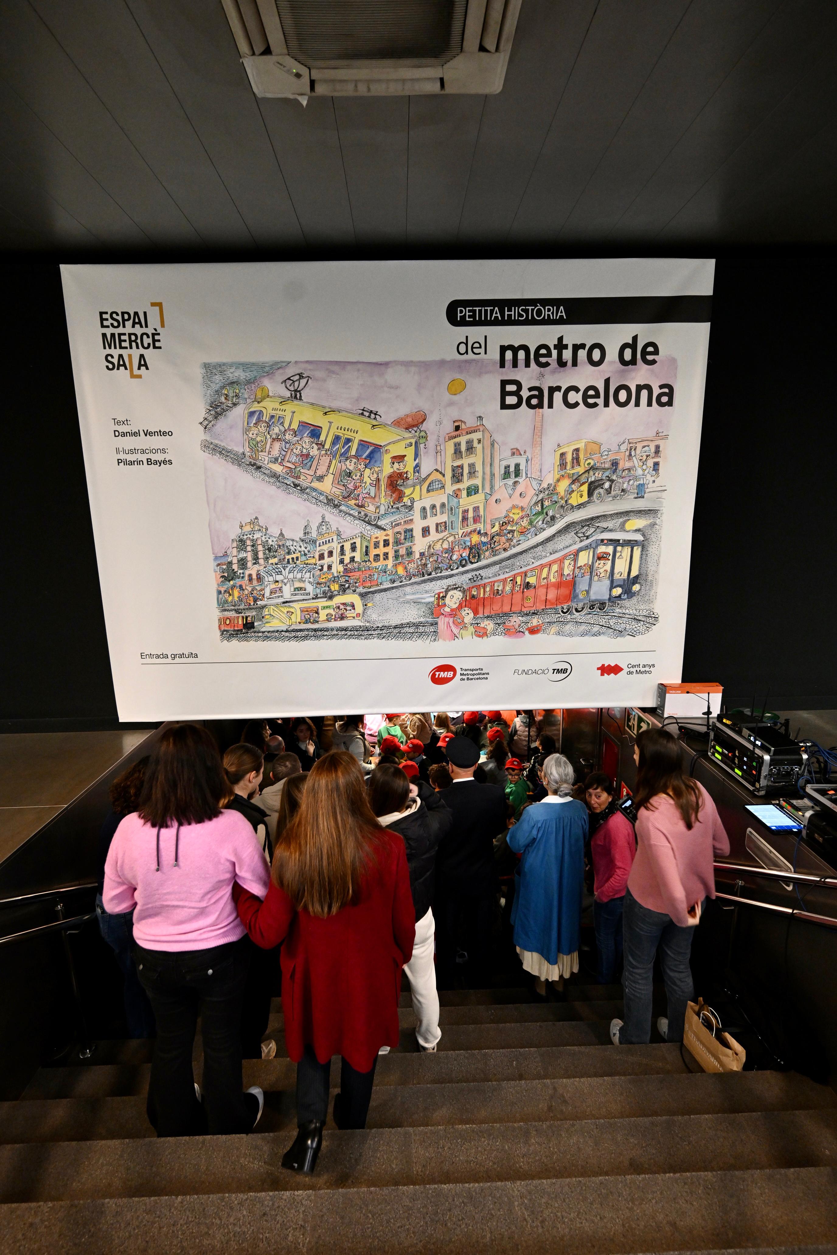 Transports Metropolitans de Barcelona (TMB) ha presentat avui el primer dels tres llibres que es publicaran enguany amb motiu dels cent anys del metro de Barcelona. L’Espai Mercè Sala, la sala d’exposicions a l’estació de metro de Diagonal, ha acollit així la presentació de “La petita història del metro”, una obra de la dibuixant Pilarín Bayés que amb els textos de Daniel Venteo, explica els cent anys d’història de metro als nens i nenes.