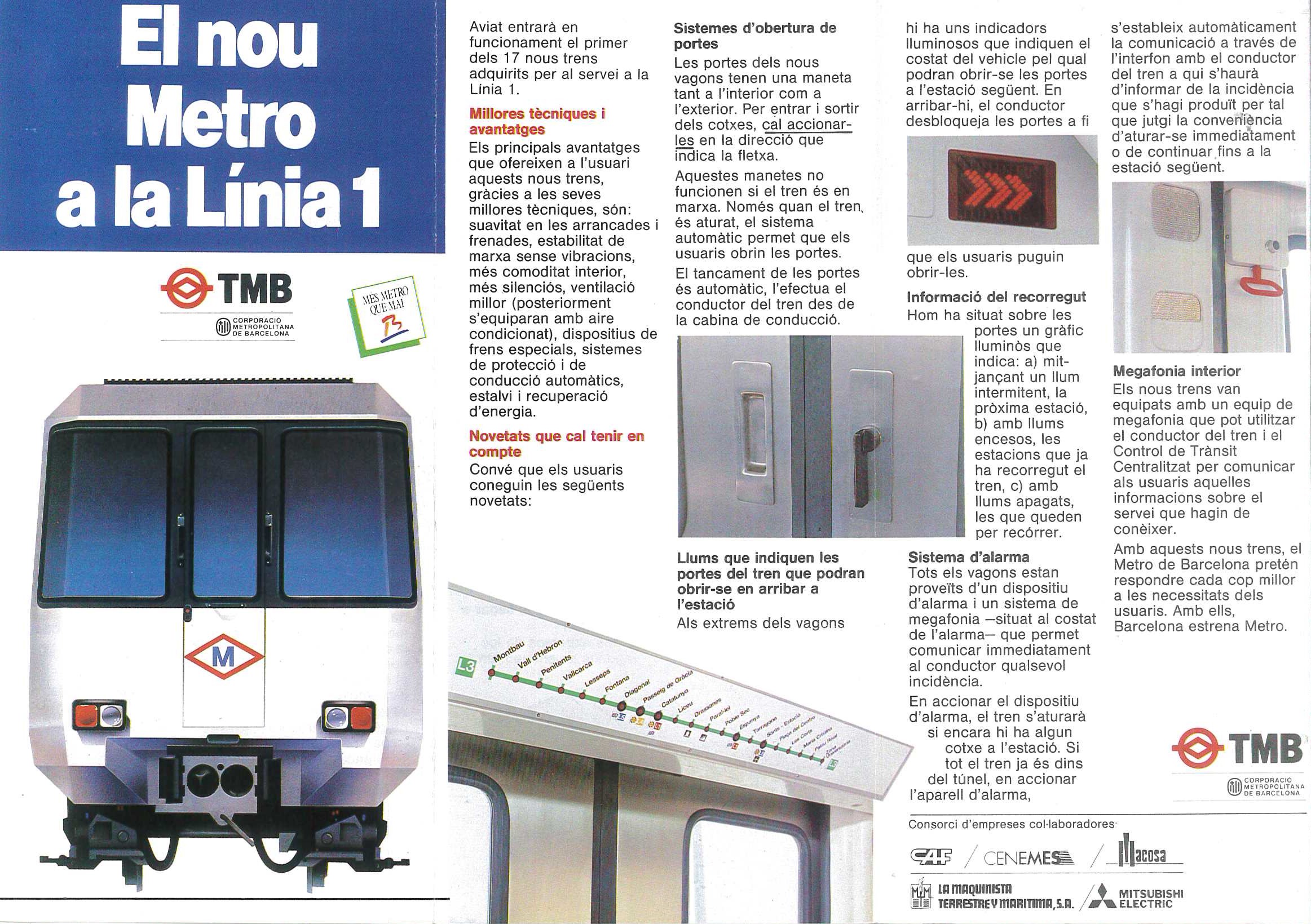 Els avisadors d’estació i la senyalització a l’interior dels vagons van ser altres de les novetats més destacables d’aquests nous trens: incorporaven pantalles amb el dibuix de la línia que marcaven amb una llumeta les estacions per on ja havia passat el comboi i la propera parada. Els trens també comptaven amb els darrers avenços de la indústria en matèria mecànica sobretot en la referida als bastidors, suspensions i equips de frenada.