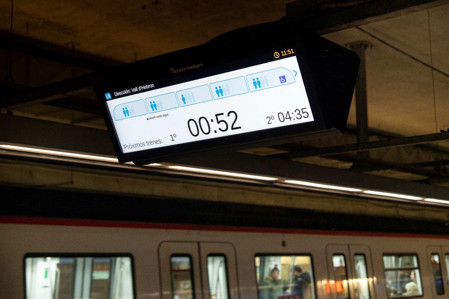 Tres estacions de metro mostren a les andanes el nivell d'ocupació dels pròxims trens