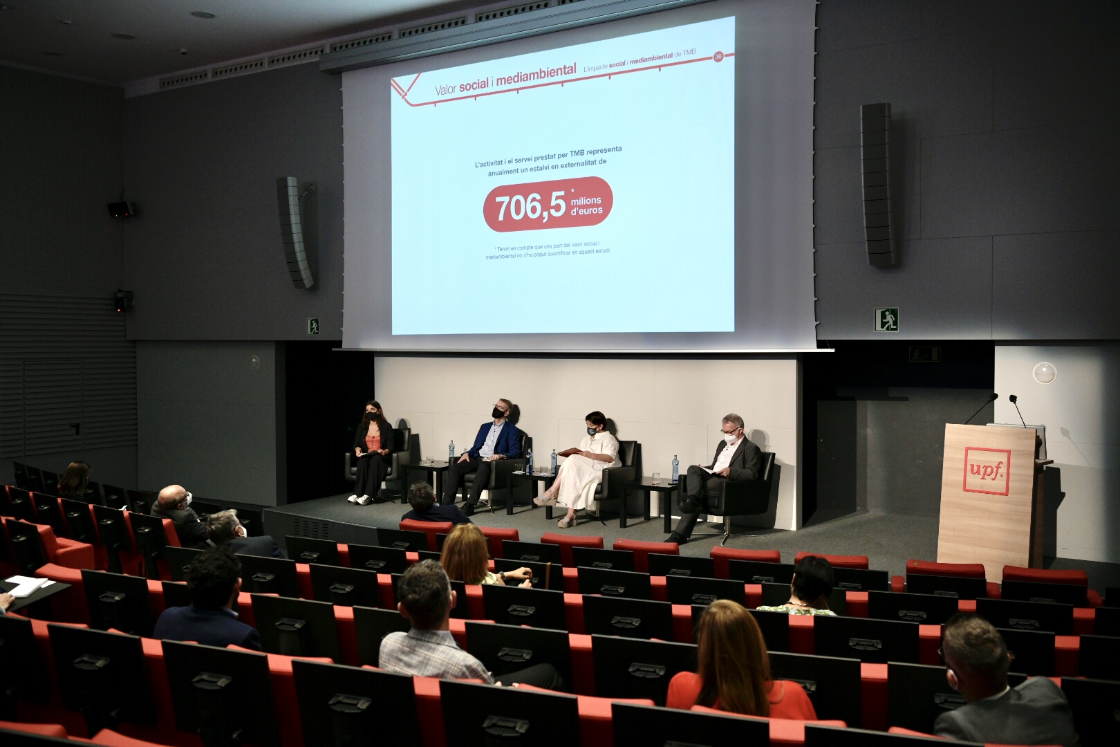 L’estudi s’ha presentat avui a l’auditori de la UPF-BSM en una jornada amb la participació de la presidenta de TMB, Rosa Alarcón; el rector de la UPF i coautor, Oriol Amat; el conseller delegat de TMB, Gerardo Lertxundi; Erola Palau, investigadora de l’Observatori de Sostenibilitat i també coautora; i per via telemàtica el president de l'Associació d'Empreses Gestores dels Transports Urbans Col·lectius (ATUC), Miguel Ruiz.